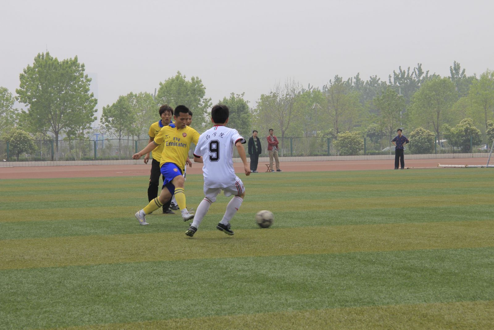 一位球员身姿敏捷,通过跳起顶球、地滚球、盘球、带球等精彩的表现,博得观众一阵叫绝喝彩声。河大杯足球赛不仅充满了希望、阳光、友谊、为各学院之间的合作交流搭建了平台,真正实现了切磋球艺、增进交流、加深友谊、促进团结的目的。每位球员,包括拉拉队在内都享受到了足球带来的快乐。