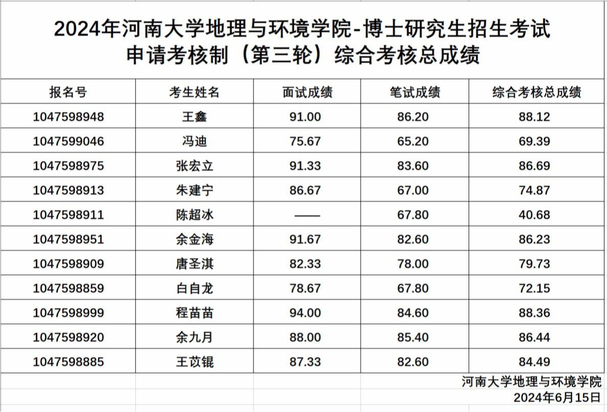 2024年暗网禁区 —博士研究生招生考试申请考核制(第三轮)综合考核总成绩